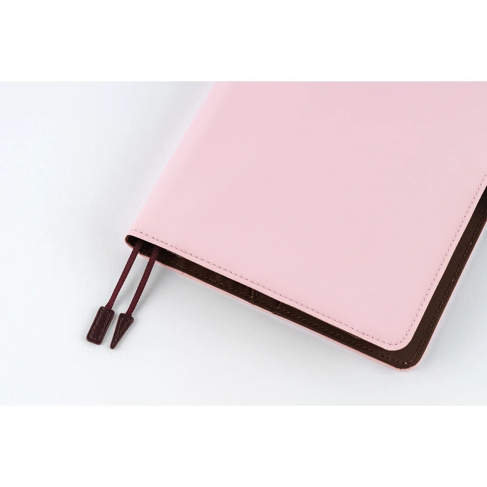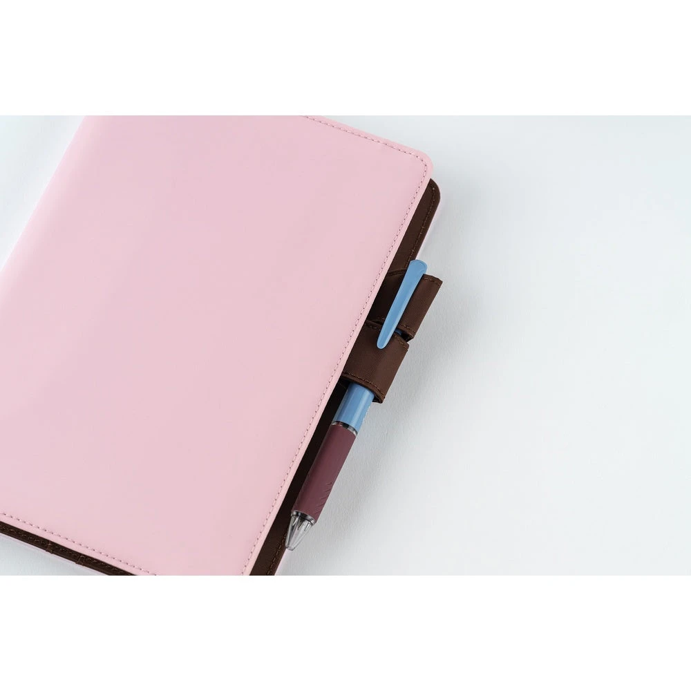 A charming mix of pale pink and dark brown—Sweetness and Bitterness—capturing two contrasting moods in one cover. Perfectly pairs with a patterned Cover on Cover and features “butterfly stopper” pen holders that also serve as a clasp to keep the cover securely closed.