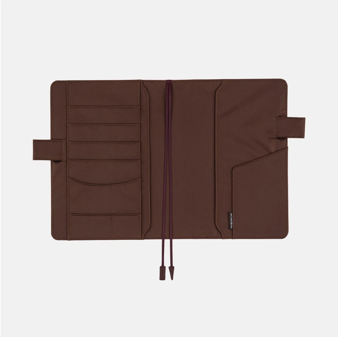 This cover will comfortably fit A5 notebooks with a spine of 0.5 inches (1.27cm) or smaller. Though it has the capacity to fit spines larger than 0.5in, the cover might have a tighter fit. Add a Hobonichi Cover on Cover to protect this cover from wear and tear and add extra space for storing photos, stickers, and postcards.