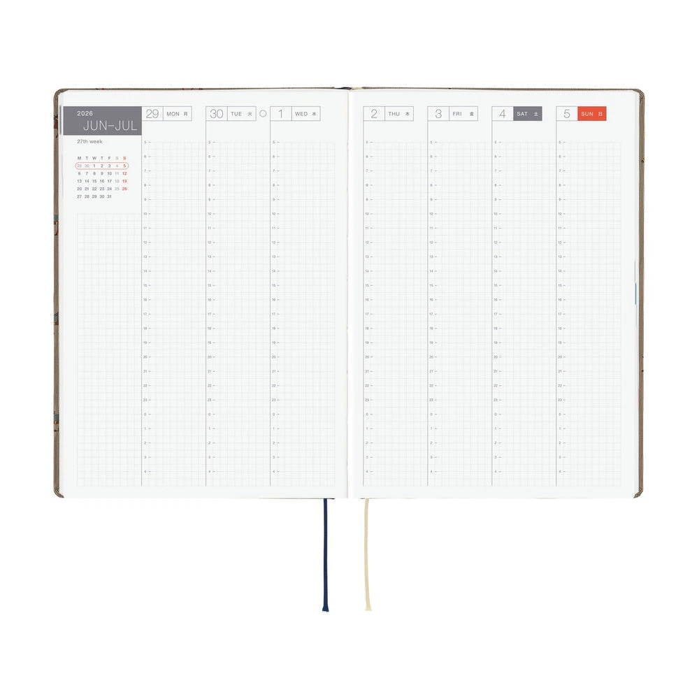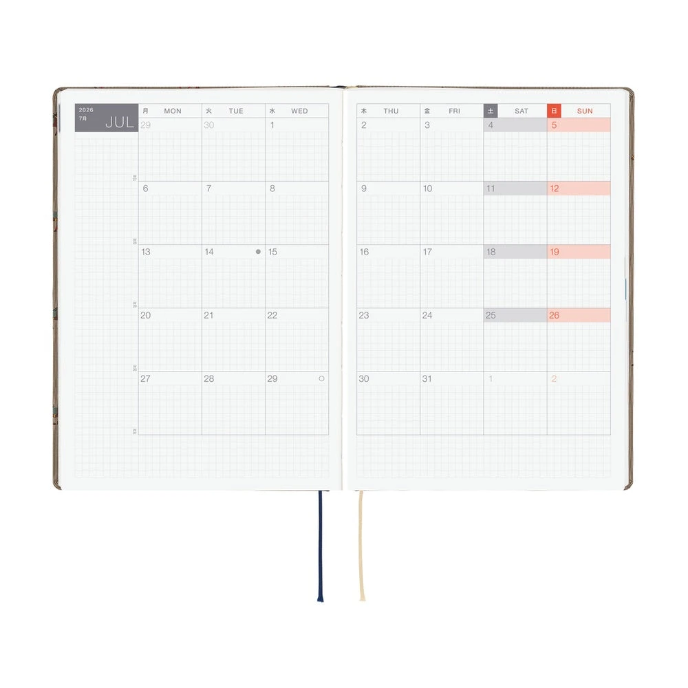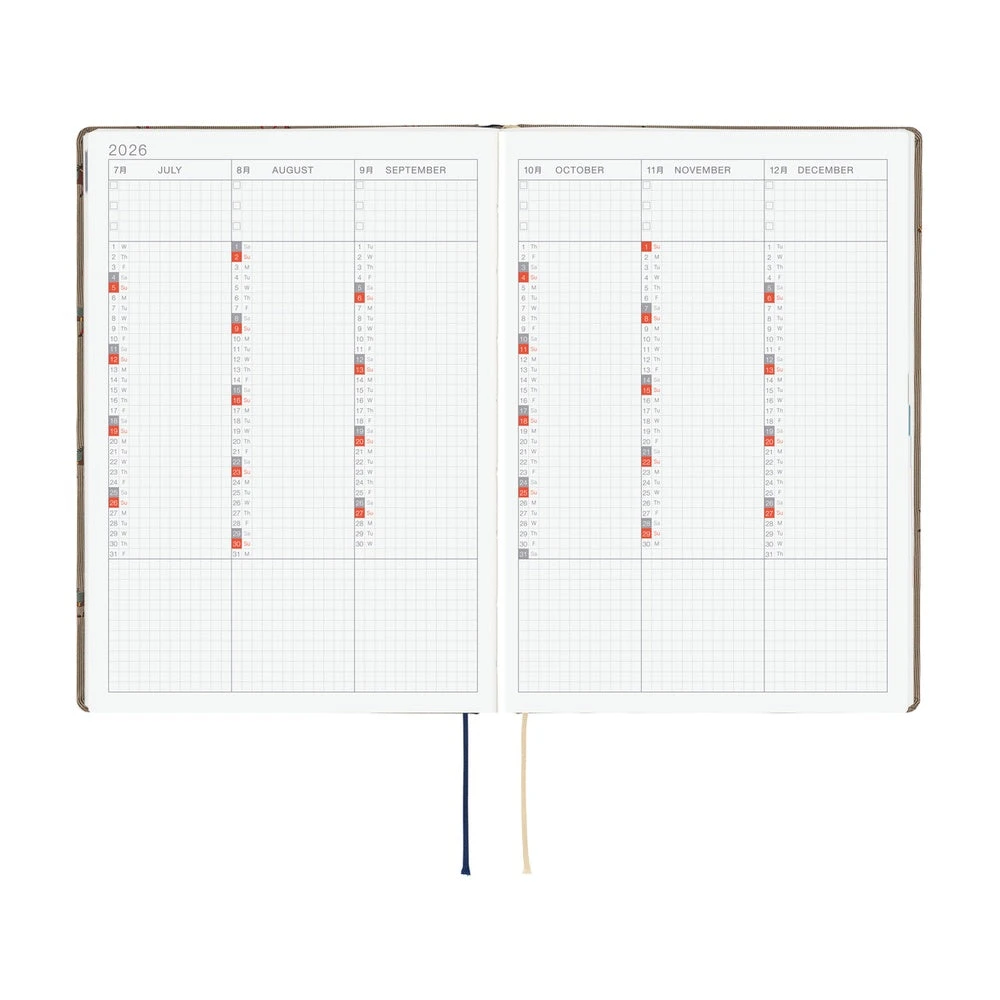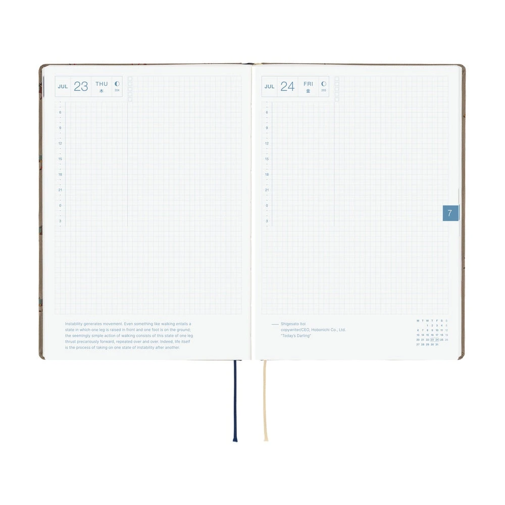 The Hobonichi Techo HON is the hardcover version of the Original and Cousin planners, available in A6 and A5 respectively. Its contents are the same as the Hobonichi Techo Original and Cousin with daily pages covering January 1 to December 31 and has Japanese quotes on the bottom of the page. It also includes the same yearly calendar, monthly calendars, yearly index, weekly layouts for the A5, and bonus pages.