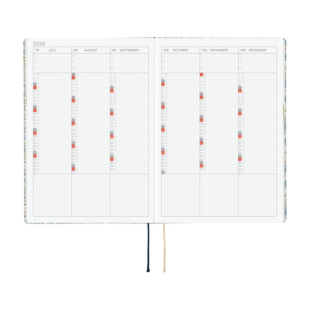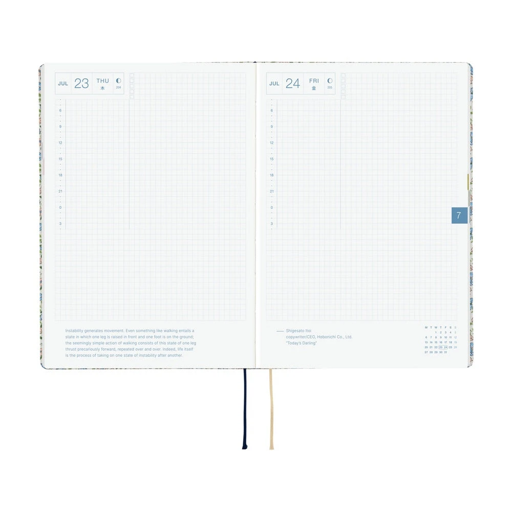The Hobonichi Techo HON is the hardcover version of the Original and Cousin planners, available in A6 and A5 respectively. Its contents are the same as the Hobonichi Techo Original and Cousin with daily pages covering January 1 to December 31 and has Japanese quotes on the bottom of the page. It also includes the same yearly calendar, monthly calendars, yearly index, weekly layouts for the A5, and bonus pages.