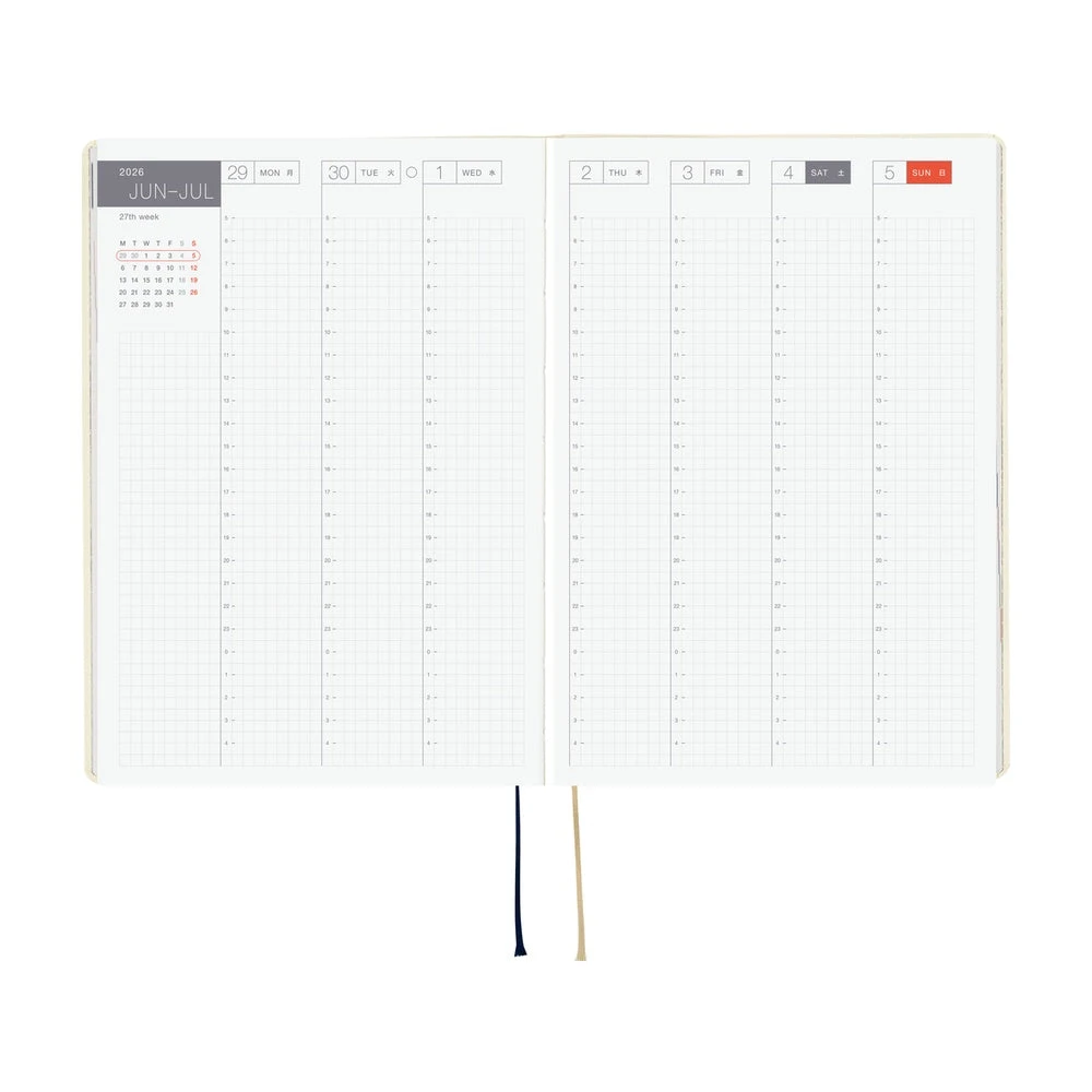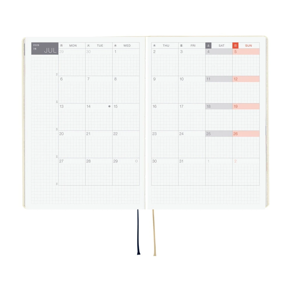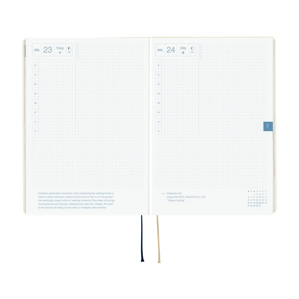 The Hobonichi Techo HON is the hardcover version of the Original and Cousin planners, available in A6 and A5 respectively. Its contents are the same as the Hobonichi Techo Original and Cousin with daily pages covering January 1 to December 31 and has Japanese quotes on the bottom of the page. It also includes the same yearly calendar, monthly calendars, yearly index, weekly layouts for the A5, and bonus pages.