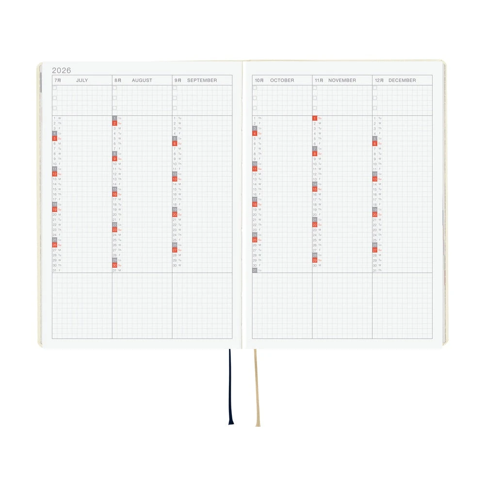 - Yearly Calendar: A convenient double-page spread shows the yearly calendars for 2025 and 2026 at a glance for a useful reference when planning ahead.