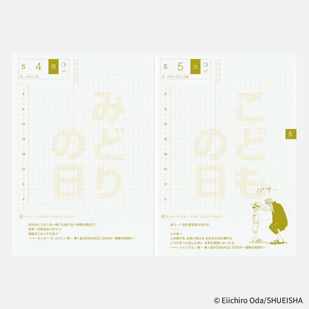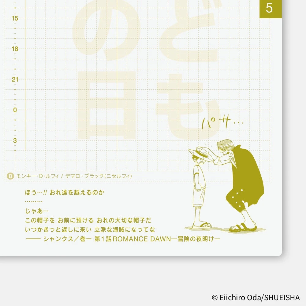This special edition page-per-day A6 size Hobonichi Techo Original book was created in collaboration with ONE PIECE magazine, which dives into the charms of the hit manga series to help fans further enjoy the world of One Piece. This edition features illustrations and quotes from the series while retaining all the features that make the standard Hobonichi Techo so easy to use.