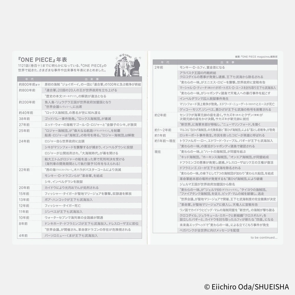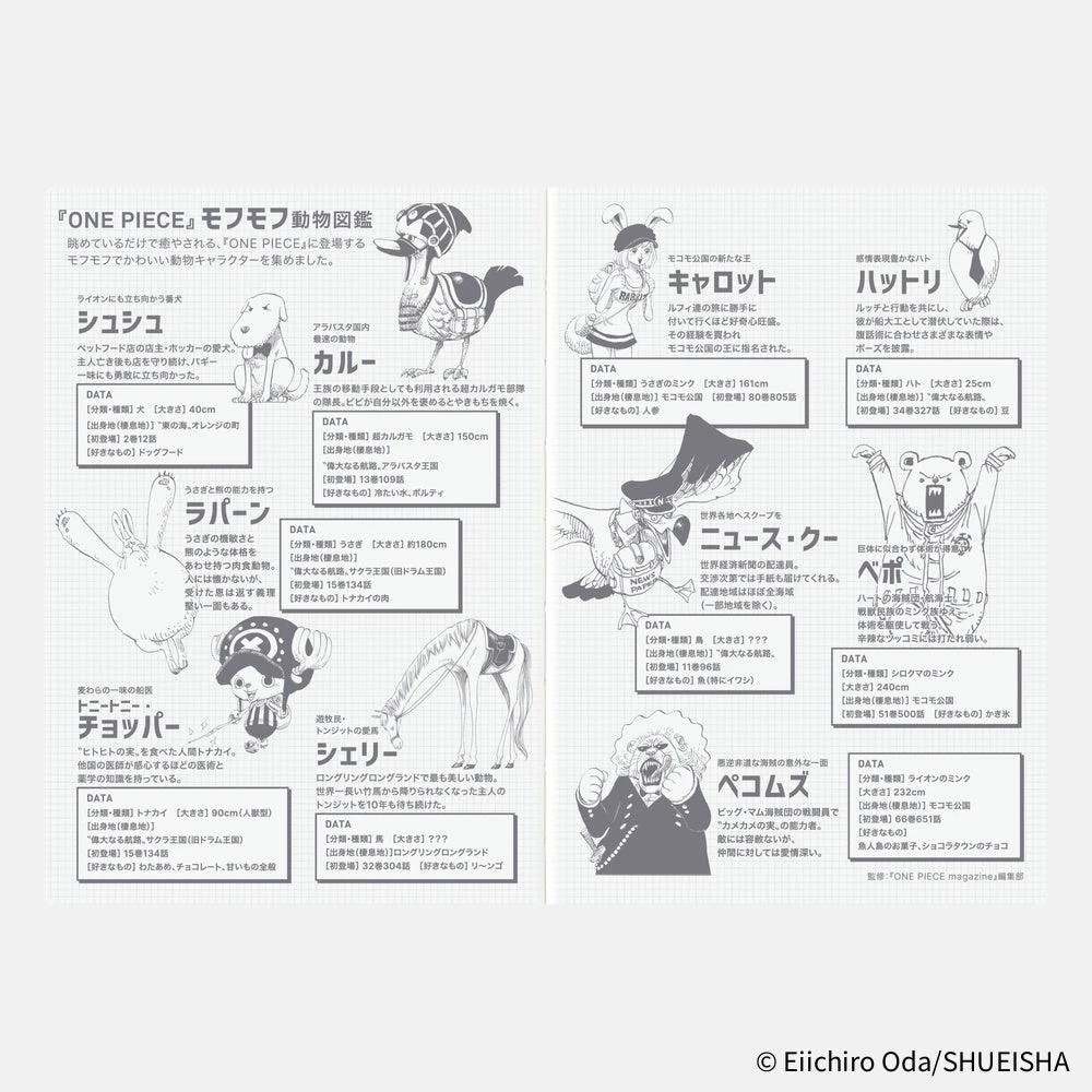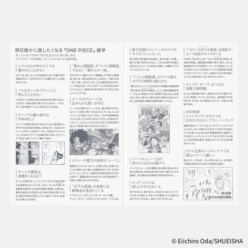 The planner includes a page at the beginning of each month for making to-do lists and writing other notes to help in planning ahead. These pages include manga strips from particularly memorable scenes that are also included in the daily quotes. There are informational pages in the back of the book that were created under the direction of the ONE PIECE magazine editing department: