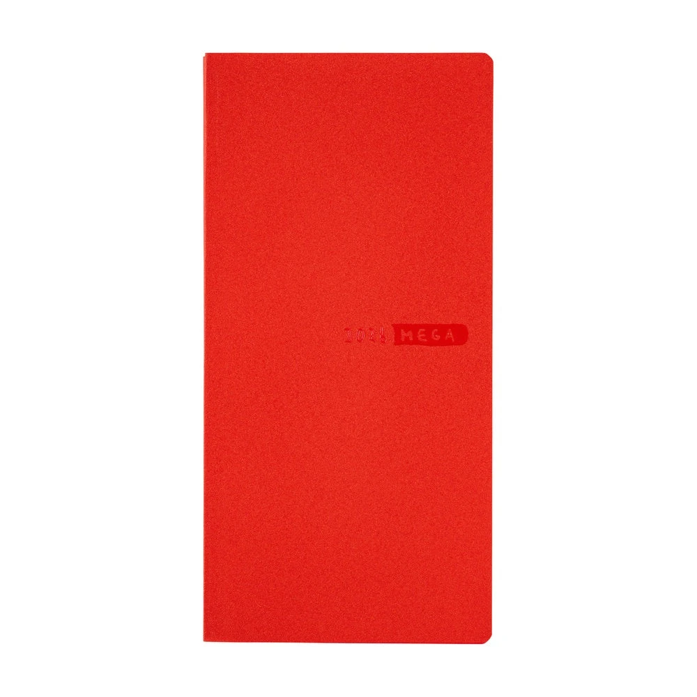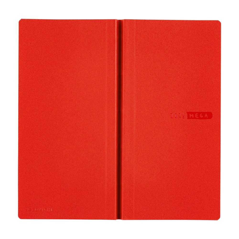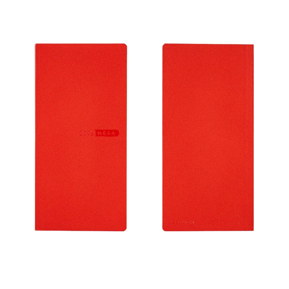 This Weeks Mega book contains three times the number of memo pages as the standard version, bringing it to a total of 215 pages of graph paper in the back. The weight is 178 g (6.3 oz), only 48 g (1.7 oz) more than the standard edition. The thickness is 12 mm (0.5 in), only 2 mm (0.1 in) thicker than the standard edition.