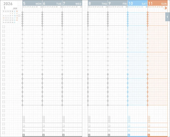 - Weekly dated from November 2025 to 2nd Week January 2027