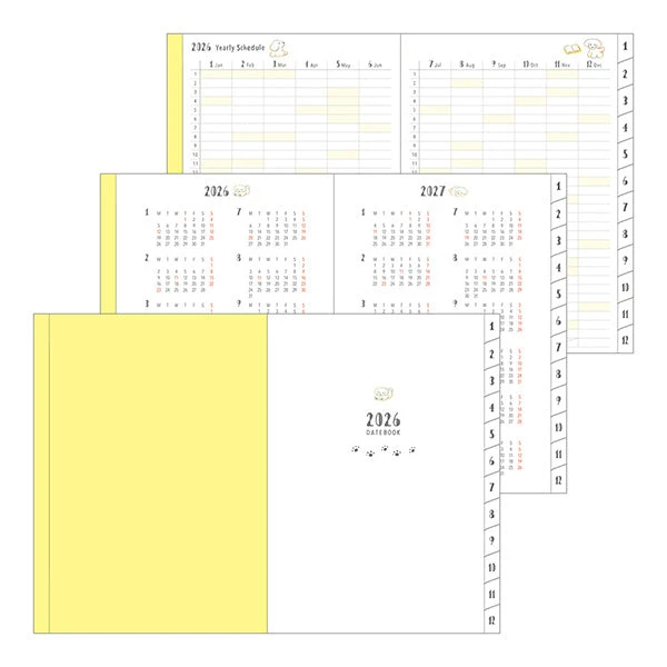 Midori’s Pocket Diary – Dog 2026 edition is a storybook-style monthly and weekly planner featuring adorable dog illustrations by Natsumi Teraoka, where each page captures the feeling of changing seasons with rainbow-outlined pups and vibrant colors. Made with Midori’s MD Paper and cloth binding, it also includes a string bookmark, monthly index tabs, a pen loop, and a protective PVC cover.