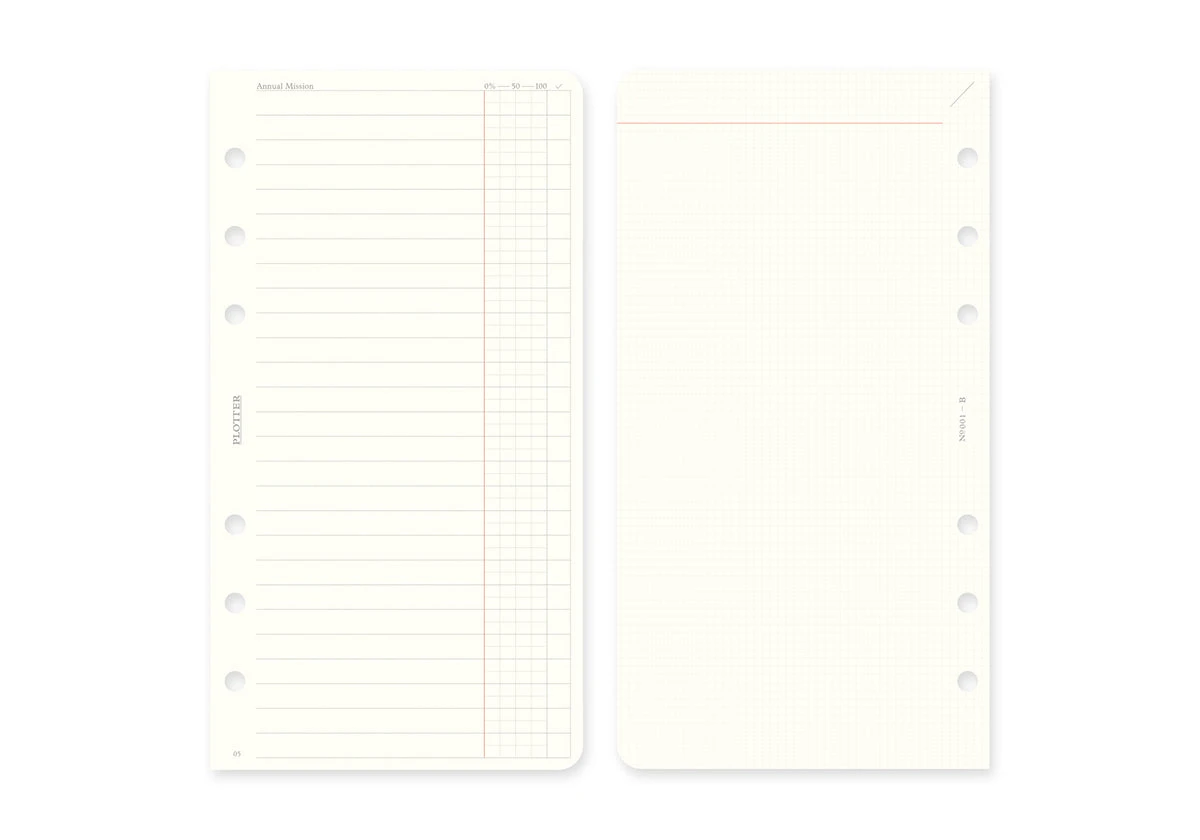 The PLOTTER accessory refills are meant to help enhance the organization and function of your PLOTTER leather binder.