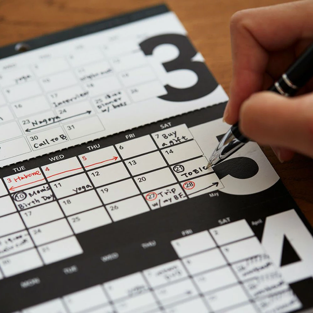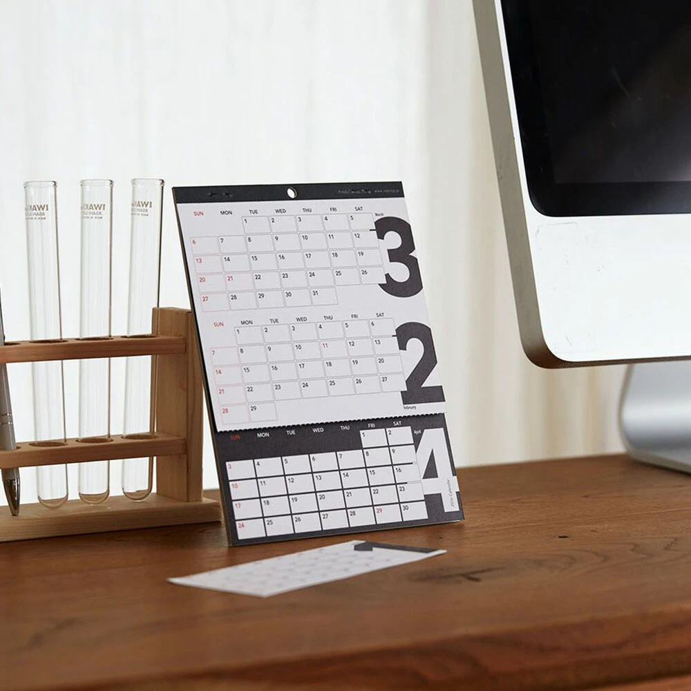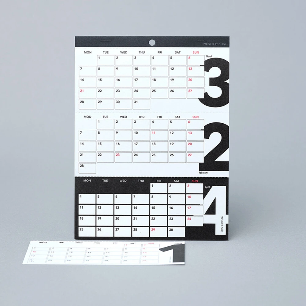Replug’s 3’s Calendar is made completely from paper and is a playful take on the traditional tear-away calendar. The 3’s calendar comes with 4 sheets of thick cardstock paper with three perforated sections each. The calendar shows three months at a glance; as you make your way through the year, tear off one month at a time to expose the next three months of the year so you’ll always be able to reference a coming date. You can hang this calendar from the wall or use the folded paper stand that is attached to the back to prop it up on your desk.