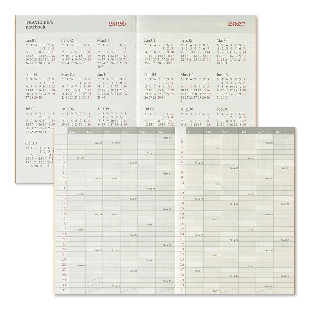 This is a 2026 Monthly Diary TRAVELER’S notebook refill with cream-colored paper. This refill is for the passport-sized Traveler’s Notebook.